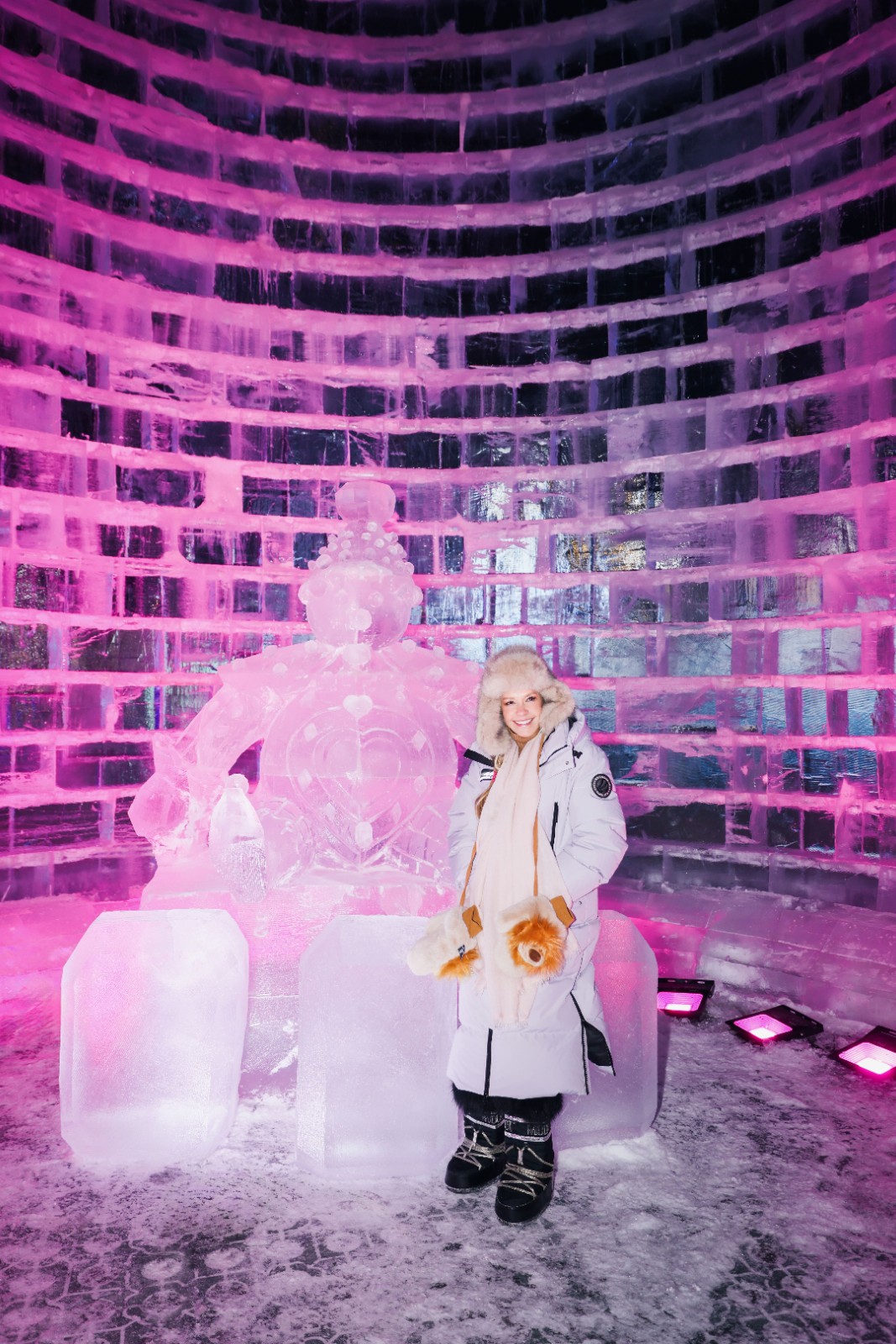 Chopard萧邦联合总裁兼艺术总监卡罗琳·舍费尔(Caroline Scheufele)与“冰雪大世界”冰雕艺术装置